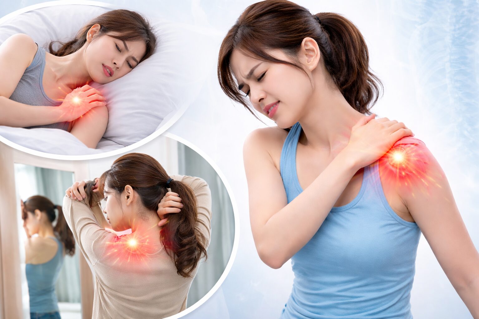 さらに、腕が思うように上がらなくなったり、後ろに回しづらくなるなど、動きの制限も出てきます。「服を着るのが大変」「洗濯物を干すのがつらい」といった変化に気づく人も多いようです。