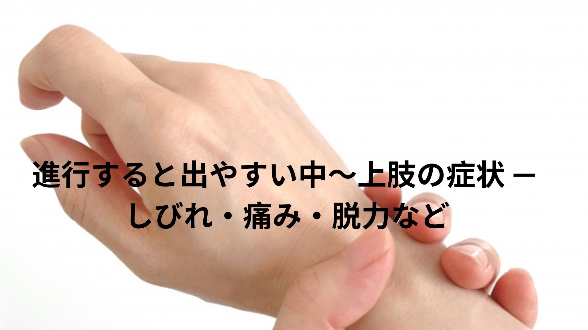 進行すると出やすい中〜上肢の症状 — しびれ・痛み・脱力など