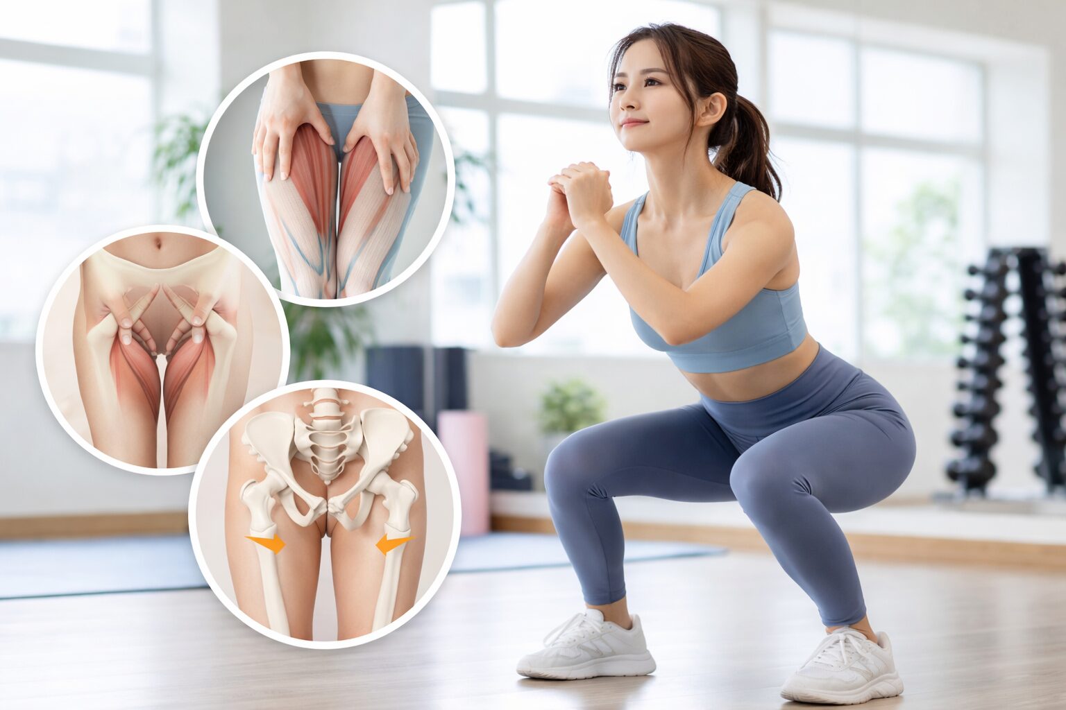 スクワットは、内転筋・臀筋・股関節まわりの筋肉をまとめて使う動きです。そのため、崩れていた筋肉バランスを整えるきっかけになると考えられています。